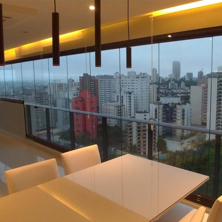 O Envidraçamento de Sacadas é um sistema de painéis deslizantes, originalmente europeu. Um sistema que permite fechar o vão livre da sacada sem perdê-la ou sem perder a vista que ela proporciona. Esse sistema possibilita a abertura total ou parcial dos painéis de vidro, permitindo que você aproveite a vista com segurança, proteção contra ruídos externos, chuva, vento, poluição, melhoria na climatização, facilidade na limpeza dos vidros e além disso a valorização do seu imóvel.