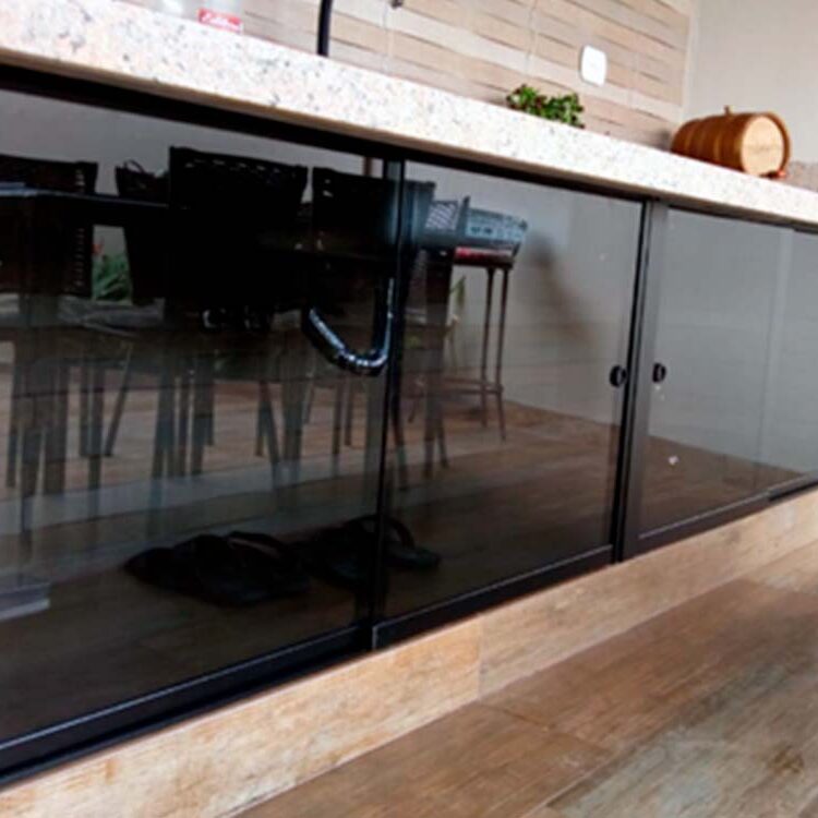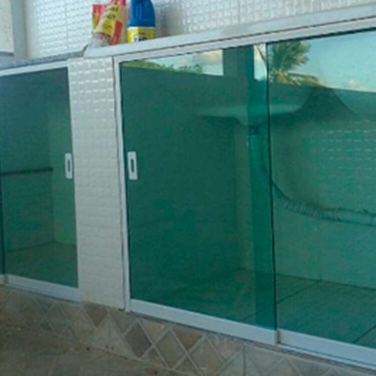 Fechamento de pia em vidro temperado, em diversas cores, modelos e películas.